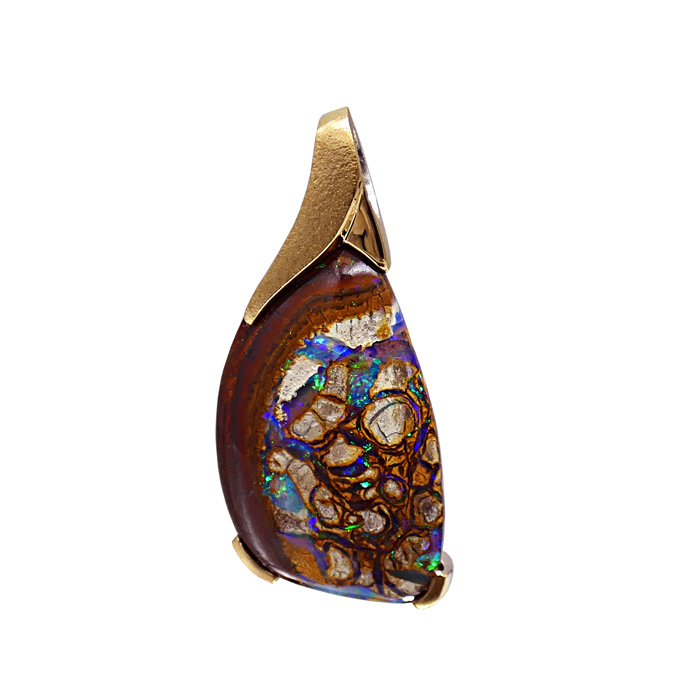 Our Boulder Opal comes from a private mine in the heart of opal country and naturally forms bringing out the best play-of-color and flash possible. We individually design each setting to highlight the opal's intrinsic beauty. To own a Boulder Opal is to possess a piece of nature – the master of intriguing, limitless beauty.
